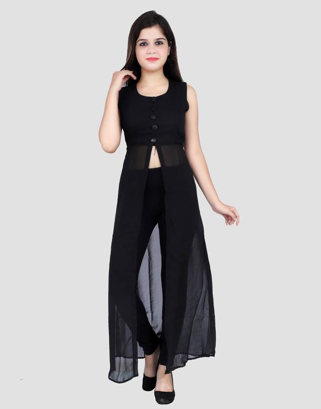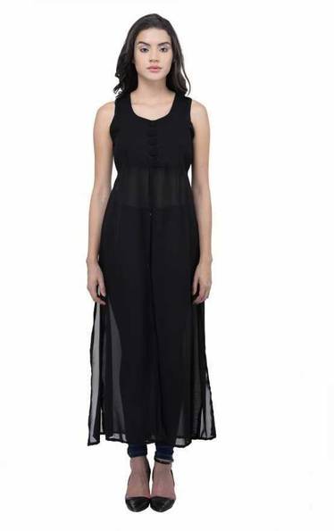 Shimao Women Solid Frontslit Kurta (Black)
