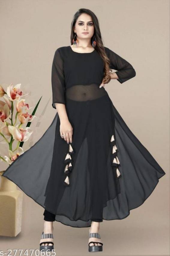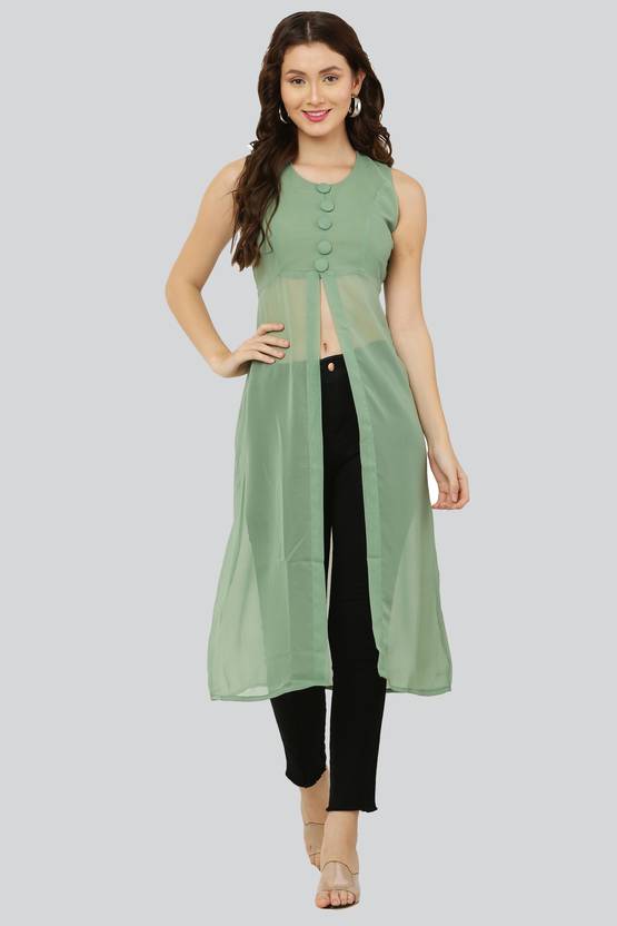 Shimao Women Solid Frontslit Kurta (Light Green)