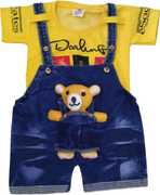 Sahaba creation presented Baby Boy's and Baby Girl's Romper Baby Suit Dungaree, Specifically Designed to Ensure that Your Little One Lights Up Every Event as the Happiest, Most Elegant and the Brightest Star, to Give elegant and gentlemanly look to Your Young Hero. For a dazzling look, having this in-demand dress in your child's closet is a terrific decision. One of the most attractive and practical items to wear in the heat of India is this combo of dungarees (Shorts + T-shirt). This will be a simple way for your kid to stay cool, feel cosy, and appear adorable. Wear this incredibly enjoyable trend this year, and your kid can relax.
