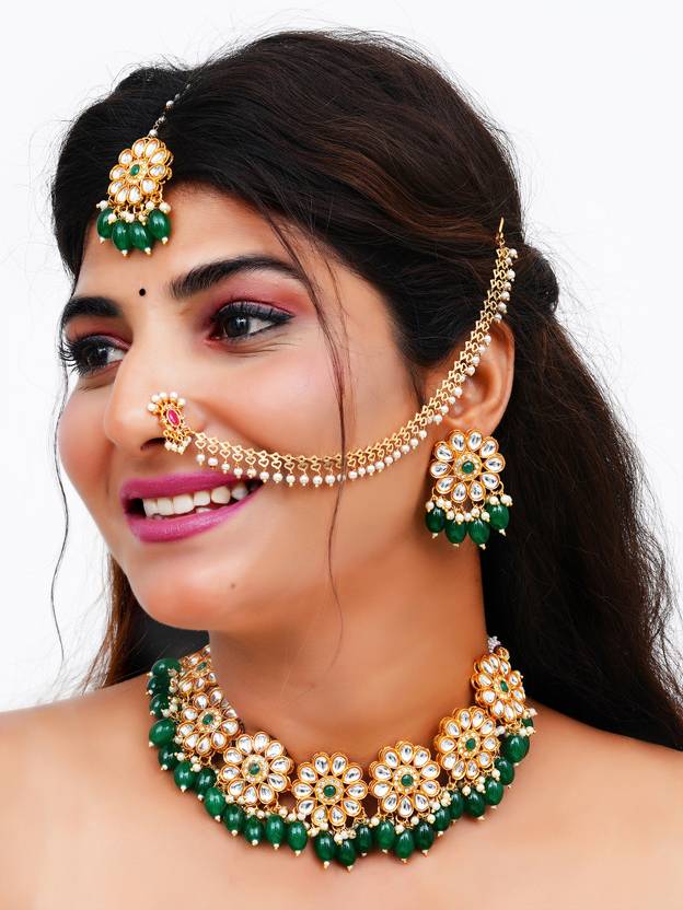 Shine Hub Alloy Gold-plated Green Jewellery Set (Pack of 1)