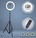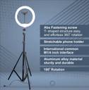 Camera stand with Ring Fill light holder with 10 inch outer diameter, medium size with powerful lighting. Comes with ball head mount for tripod and cell phone holder, easy to install and use on tripod, lighting for phone photography or live video. After installed on the ball head mount adapter, the ring light can be rotate 360 degree to any angle that you need or turn it from horizontal to vertical orientation Multifunctional ring light not only can be used as photography or live video light, but also suitable for makeup, reading, indoor and outdoor lighting. with USB port, this ring light is easy for powered by wall charger, computer or power bank White light, warm white light, warm yellow light three color modes, each light color has 7 levels of brightness to adjust to meet the lighting needs for taking photos, videos or makeup, reading books in different environments Professional photography ring light, It comes with the Tripod which can be extended up to 7 feet (84 cm) , which helps you perfect lighting at your face.