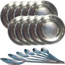 Add a touch of vintage charm and elegance to your dining table with the SHINI LIFESTYLE Heavy Gauge Steel Laser Halva Plates, Old Style Quarter Plate, Breakfast Plates, Poha Plate with Spoon Set. Whether you're hosting a brunch gathering or enjoying a quiet meal at home, these plates and spoons are sure to impress with their unique design, durability, and functionality. Elevate your dining experience and indulge in style with this remarkable collection.