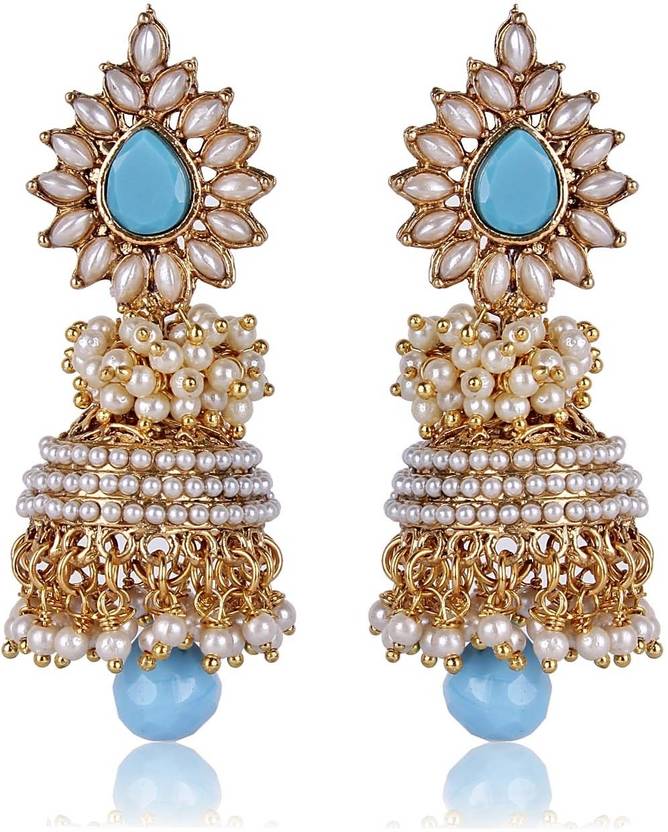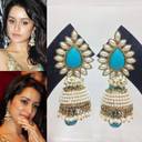 These are replica of the earrings worn by Shraddha Kapoor in the moive Aashiqui 2. These beautiful earrings are handcrafted in copper alloy with imitation Pearls and Polki of very fine quality and semi precious stones. Coming from the house of Shining Diva, these lovely earrings are coated with Gold polish and are perfect for upcoming festive season. Order these online today.