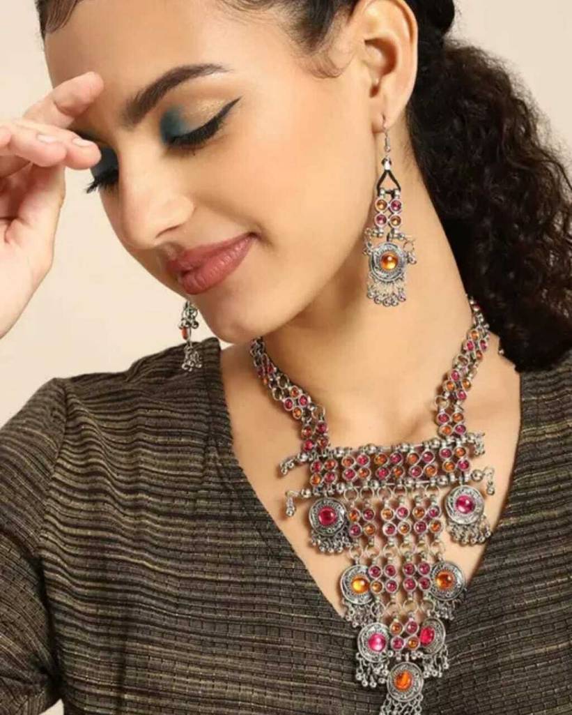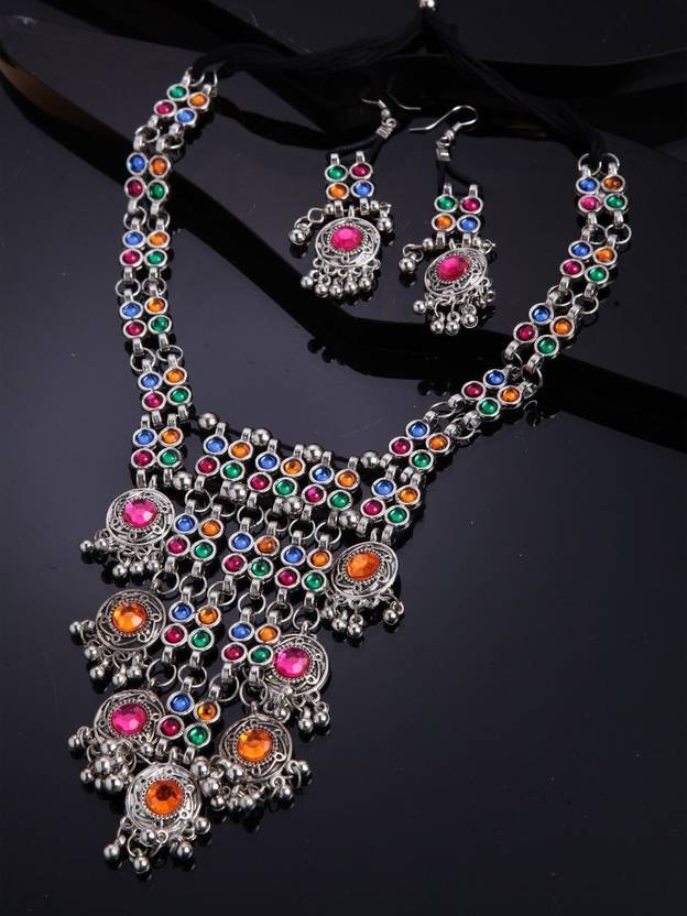 Shining Diva Oxidised Silver Silver Multicolor Jewellery Set (Pack of 1)