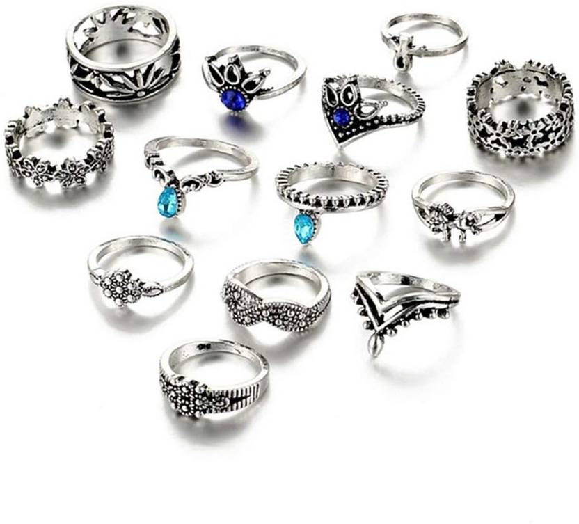 Shining Diva Silver Jewellery Set of 13 Midi Finger Rings Alloy Cubic Zirconia Ring Set