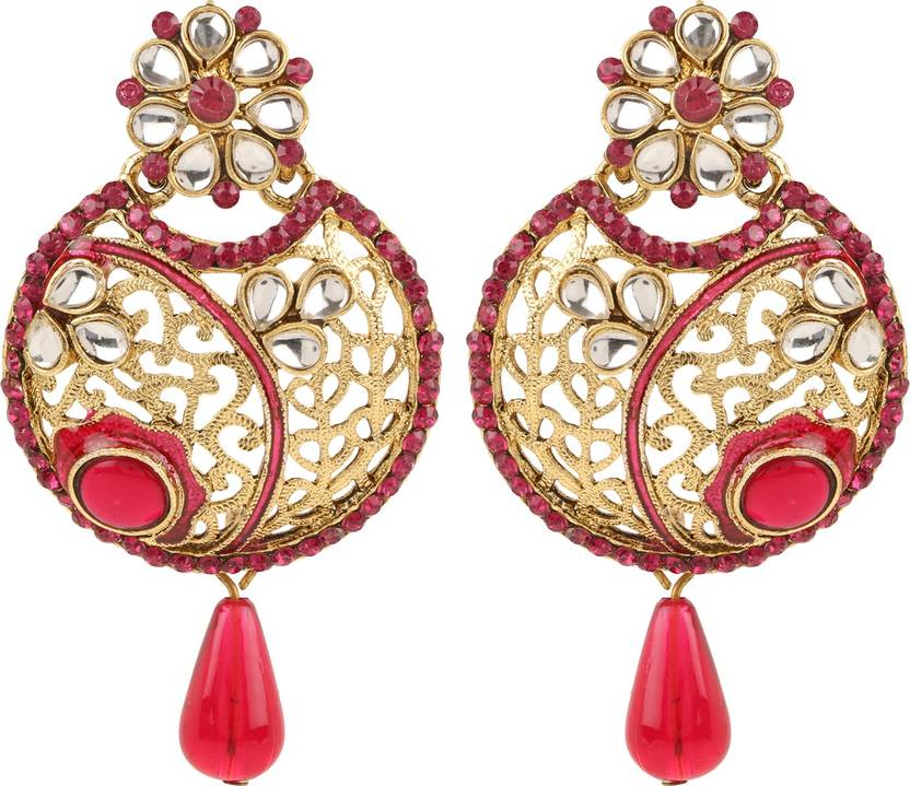 Fancy Traditional Chand bali Crystal Brass Chandbali Earring