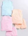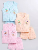 Featuring a modern touch, the T-shirts in this set boast a convenient front button closure, ensuring hassle-free dressing for parents and fuss-free wear for babies. The sleeveless design adds a trendy flair, appropriate for warm-weather outings. The shorts, on the other hand, provide a comfy fit with an elasticated waistband, allowing your baby to move with ease and comfort. Therefore, embrace both fashion and functionality with this contemporary ensemble.