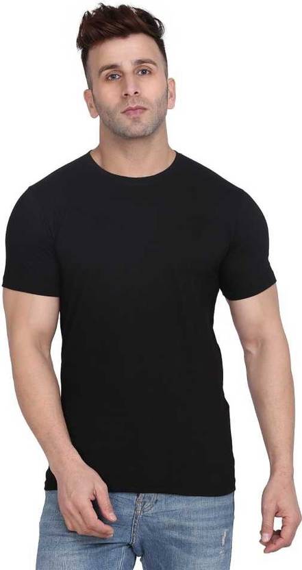 Men Solid Round Neck Cotton Blend Black T-Shirt