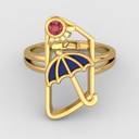 This ring is made with truly for the summers, given with window showing an umbrella with blue enamel and a shining Sun all with yellow gold and ruby studded in the sun showing extreme heat.