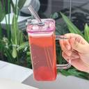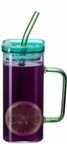 Elevate your beverage experience with this stylish Green Square Glass Tumbler featuring a matching handle, airtight lid, and reusable glass straw. Crafted from durable, high-quality glass, it's perfect for enjoying juices, iced tea, smoothies, or cold coffee. The square shape adds a modern aesthetic, while the leak-proof lid ensures spill-free sipping on the go. A refreshing orange slice inside adds a vibrant touch, making it both functional and visually appealing. Ideal for home, office, or gifting. Capacity approx. 400ml.
