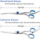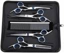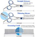 This Dog Grooming kit is a complete set of hair tools; it contains all the tools you’ll need to groom your dog, SOLID AND DURABLE: Grooming Scissors are made of stainless steel for last a long time and avoiding rusting., ADJUSTABLE PLATE SCREWS: About these trimming scissors, you can adjust the scissors' degree of tightness with the middle screw., SILICONE PROTECTION: These grooming scissors use a silicone pad at the handle to prevent accidental clamping of the fingers when used., IDEA GIFT - An awesome pet grooming set would be great gift to a pet groomer or a beginner.