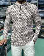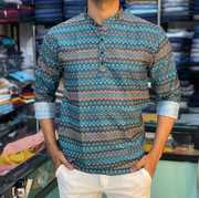Men's Style Cotton Blend Fabric With Multi Color Latest Designs Digital Printed Ready Made Full Sleeve Stiched Stylish Kurta Shirt For Men /