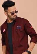 SHIRTZONE Men Embroidered Casual Maroon Shirt