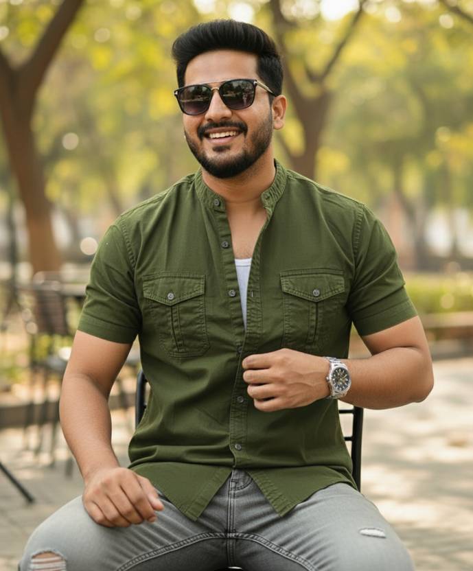 SHIRTZONE Men Solid Casual Green Shirt