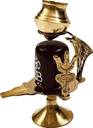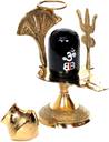 Shiv Black Shiva Lingam & Brass Abhishek Patra with Trishul and Nag for Pooja Room | Shivling Showpiece Statue | Car Dashboard Murti (Brass Argha Stand with Kalash for Shivling) Decorative Showpiece - 12 cm (Brass, Gold, Black)