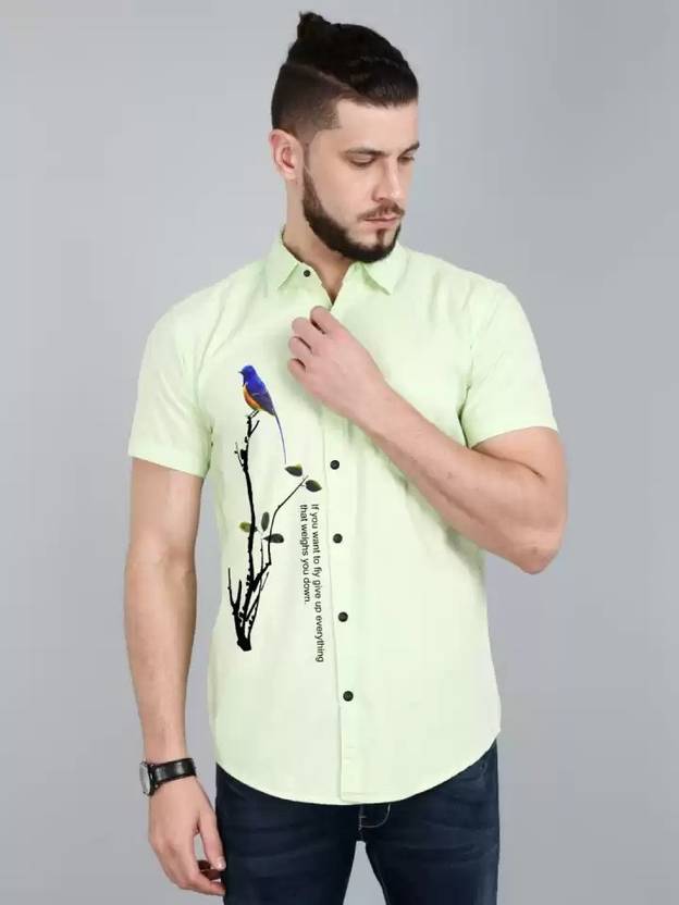 Thanks to its charming bird print pattern, this shirt exudes a sense of style that effortlessly captures attention. Its distinctive pattern adds a touch of personality to your outfit, making it a unique fashion statement.