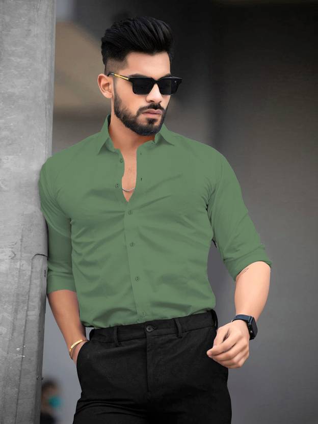 SHIV FASHION Men Solid Formal Green Shirt