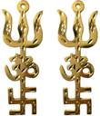 shiv mart Trishakti Yantra Swastik, Om and Trishul - Original Brass Home Decor and Puja Wall Hanging Decoration and Gifting Brass Yantra (Pack of 2)