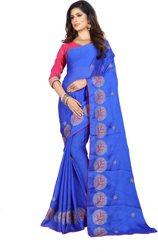 Shiv Rudra Enterprise Embroidered Bollywood Chiffon Saree (Blue)