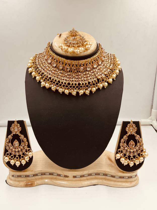 Shiv shakti jewellers Presents This Wedding complete jewellery dulhan set/bridal set for wedding, we provide 1-Short Choker , 1- Necklace, A Pair Hath-phool, A Pair of Earrings, 1 side jhoomar passa, 1 Nose Ring, 1 Maang-Tikka-Total 8 item complete set, Add shine to your look with this classy and elegant necklace set from Shiv shakti JEWELLERS. Look - Attractive and glossy finish bridal set. Special Feature - Light Weight and Flexible that helps you in wearing long time. Made: It is made from good quality of stone and kundan with a blend of gold plating and hence the look of the set is rich. Skin Friendly: The Necklace has been made from toxic free materials being nickel & lead free. Of course, the earrings will not cause any skin reactions, perfect for with sensitive skin.