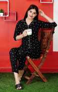 SHIV TEXTILE Women Printed Black Night Suit Set