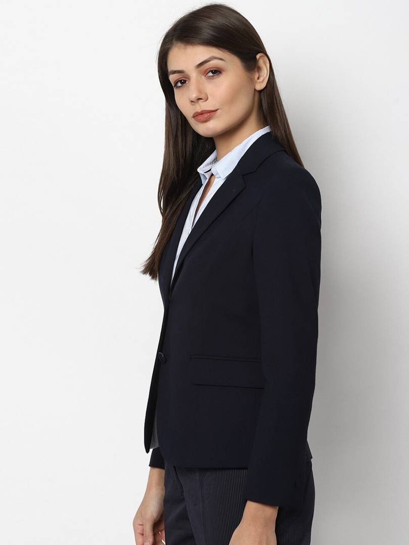 Shiv Traders Solid Single Breasted Formal Women Blazer (Blue)