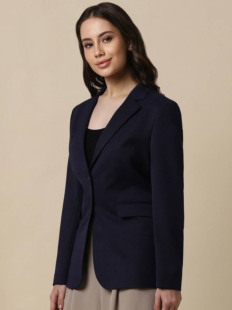 Women Solid Single Breasted Formal Blazer (Blue)