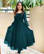 An amazing range of women's ethnic wear in soft and solid colors that looks perfect for regular wear with beautiful designs and patterns. These apparels are very stylish and comfortable too. Get rid of the 'regular' look this season wearing suit set .An anarkali salwar suit is a form of women's dress originating from the india. The anarkali suit is made up of a long, frock-style top and features a slim fitted bottom. It varies in length and embroidery such as floor-length cuts.The word anarkali translates to the "delicate bud of the pomegranate flower/tree." This name signifies the qualities of softness, vulnerability, innocence, and beauty associated with the women who wore anarkalis.