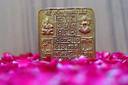 Shiva Tears Shree Laxmi Ganesh Ashtadhatu Brass Yantra, Golden Brass Yantra