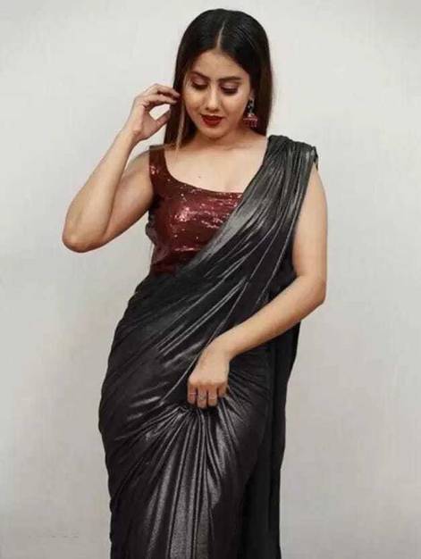 fiorrifab Solid/Plain Bollywood Lycra Blend Saree (Black)