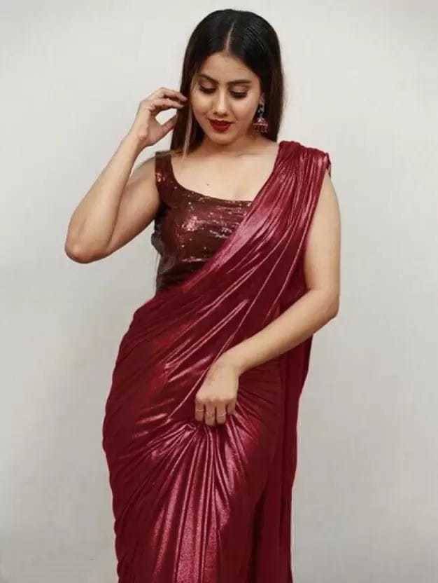 fiorrifab Solid/Plain Bollywood Lycra Blend Saree (Maroon)