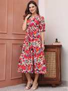 Shivadream Women Fit and Flare Yellow Midi/Calf Length Dress