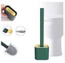 SHIVAM ENTERPRISE Silicon Toilet Brush (Pack of 2 ) with Slim Holder & Wall mounting, Quick Drying & Anti-drip Set Holder with Long Handle Silicone Flex Toilet Bowl Cleaner Brush, Soft Silicone Bristle Clean Toilet Corner with Holder (Green, Blue)