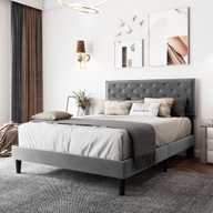 shivang mattress Fabric King Size Bed With Button Tufted & Diamond Line Headboard For Bedroom || Engineered Wood King Bed (Finish Color - Grey Kylian, Delivery Condition - DIY(Do-It-Yourself))