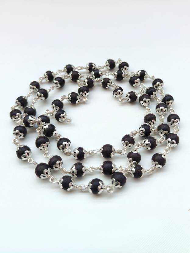 ShivaRatna Karungali Malai 54+1 Beads Crafted with Germanv Silver - 8 mm, Govt Certified Beads Silver Plated Wood Necklace