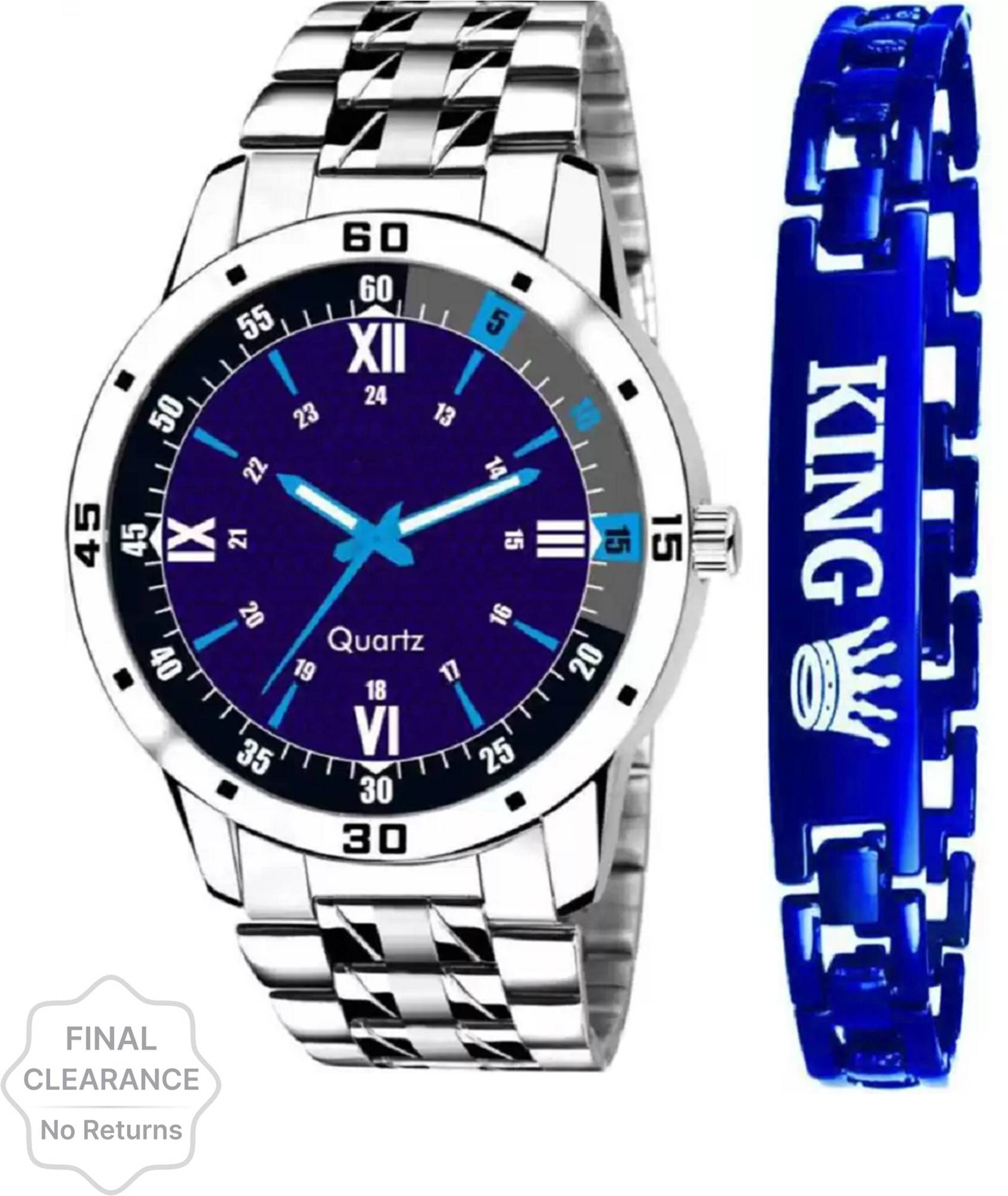 New Designer Blue Dial Watch and King Bracelet Combo For Men