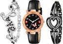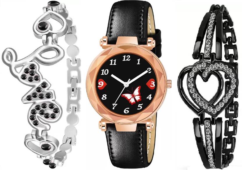 Shivark Analog Watch - For Girls SW-496 Exclusive New Combo Printed Dial Black Strap 2 Bracelet For Women