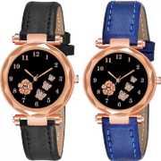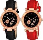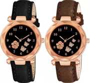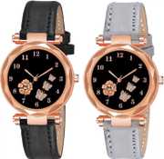 New Latest Designer Printed Dial Black and Grey Leather Strap For Girls