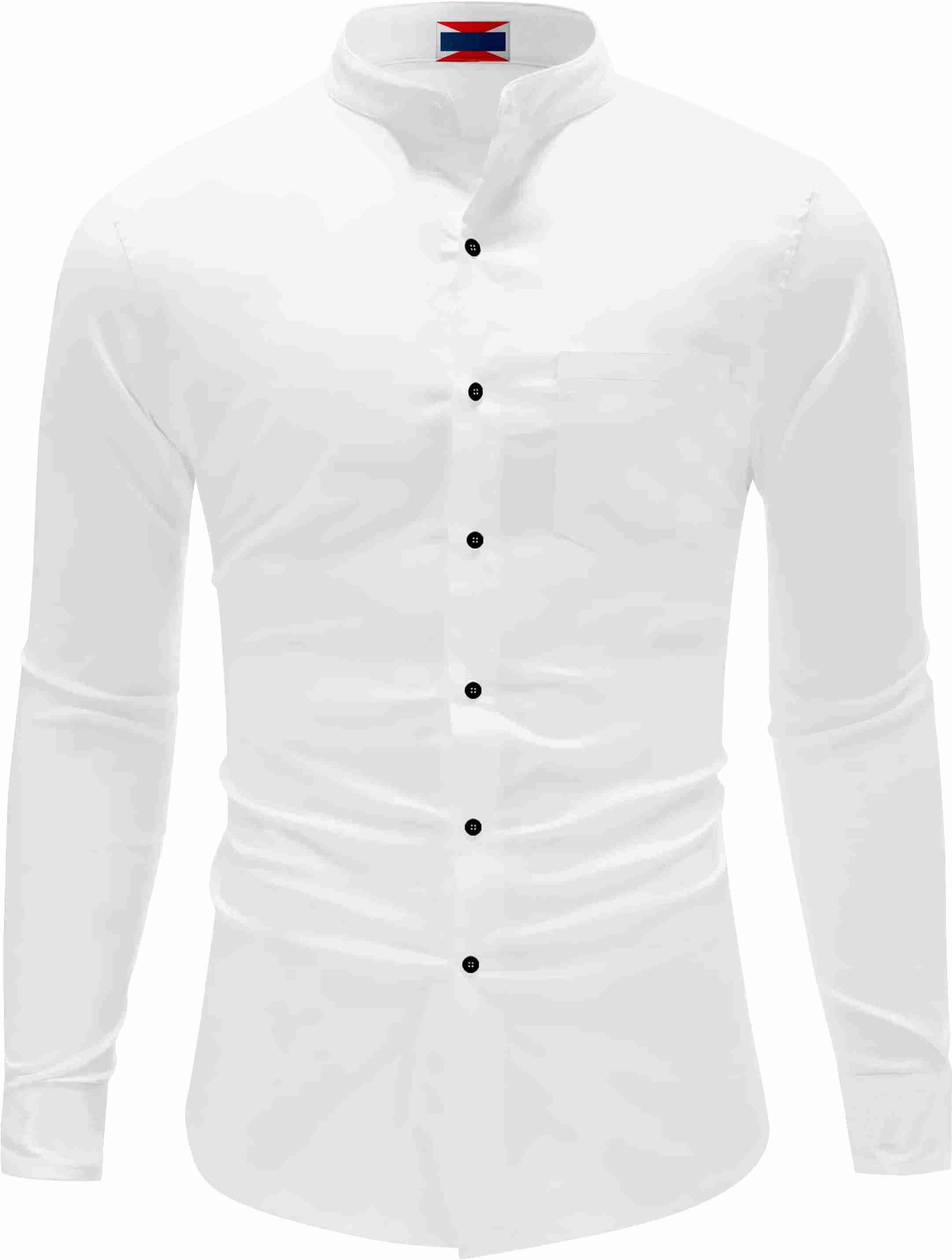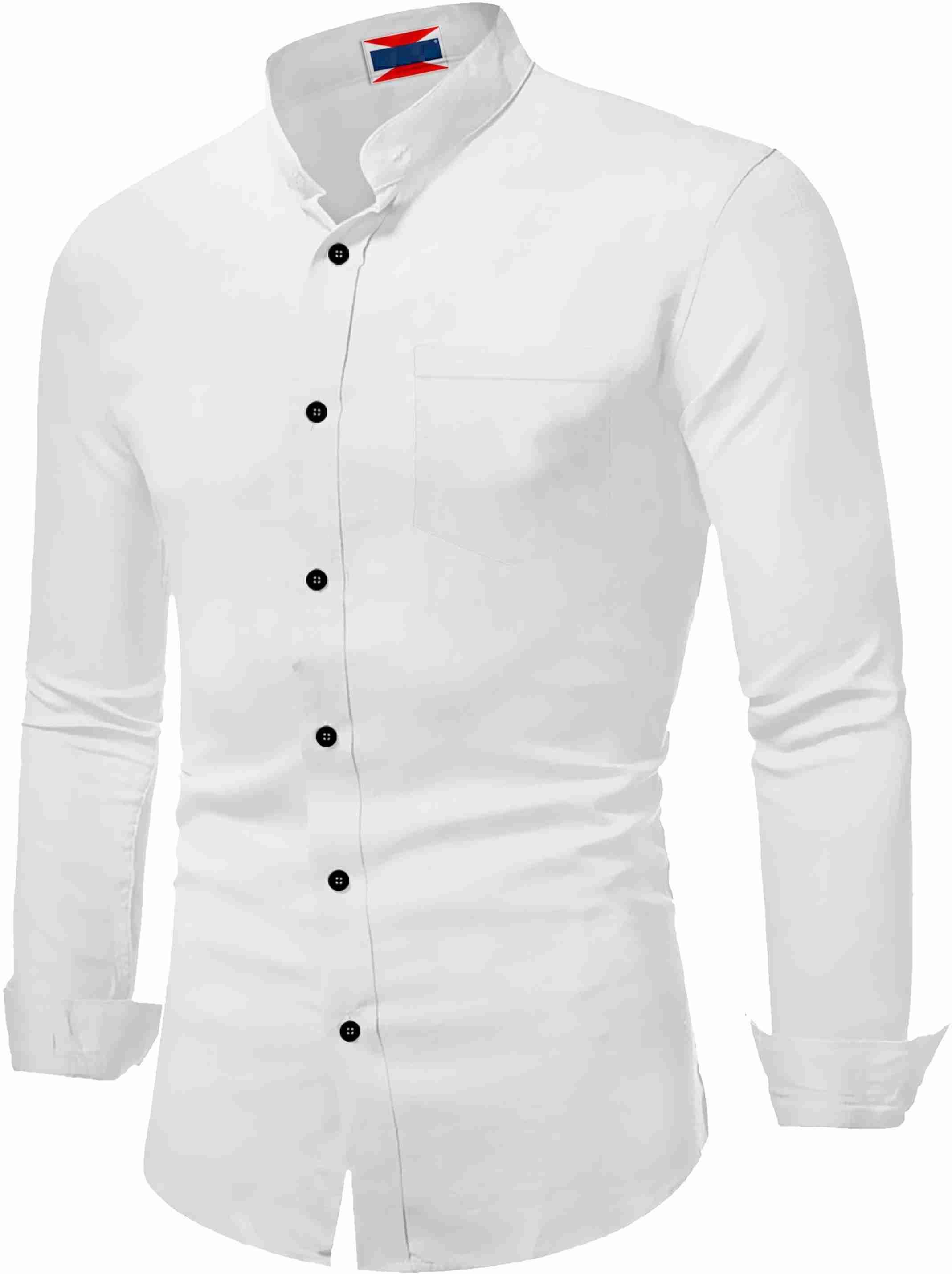 Men Regular Fit Solid Mandarin Collar Casual Shirt