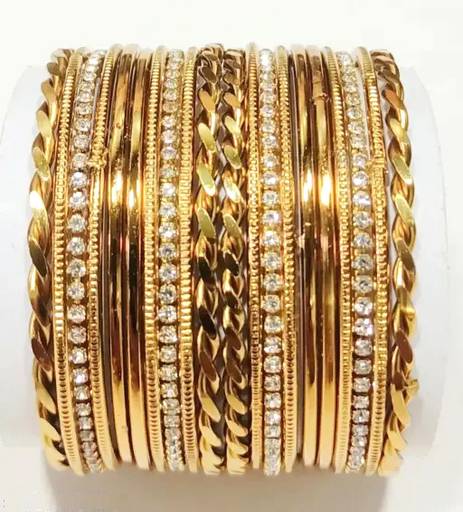 Shivarth Beautiful Shiny Stone Golden Plated Kada/Chudi Bangle Set Use For Girls