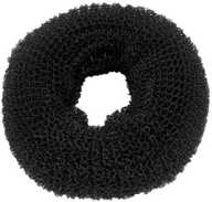 Hair donut ring style bun maker from the house of beauty. Pull the hair back into a high ponytail and secure it with elastic at the crown. Place the hair donut at the very end of the ponytail and pull strands through the hole in the centre.