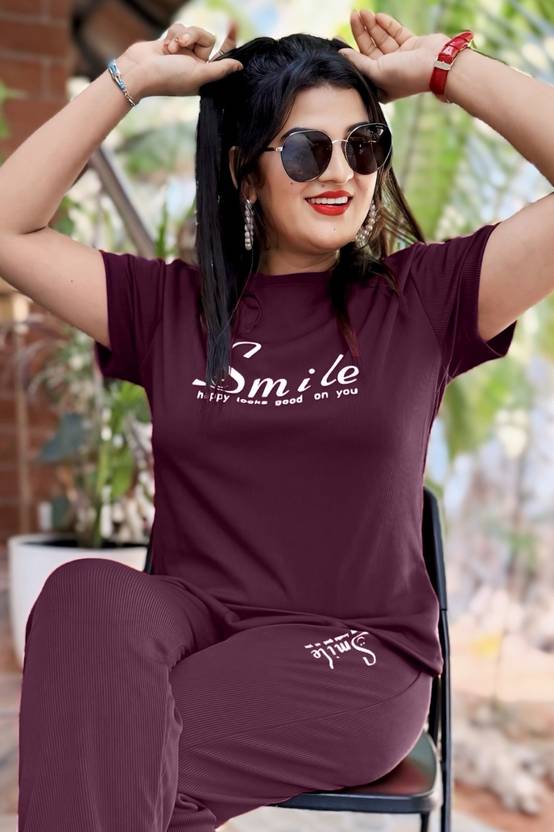 Fit Type: Relaxed { Sleeve Type: Half Sleeve | Neck Type: Round Neck Night Suit set for Women Stylish { Two piece Nightwear: Printed T-Shirt + Pyjama (pajama sets for women) Purpose: Night Dress for women , sleepwear - loungewear - home wear for women { Care Instructions: Gentle Machine Wash,Do not Iron on print/embroidery/embellishment,Reverse and iron,Do not wring,Do not tumble dry,Wash with like colors