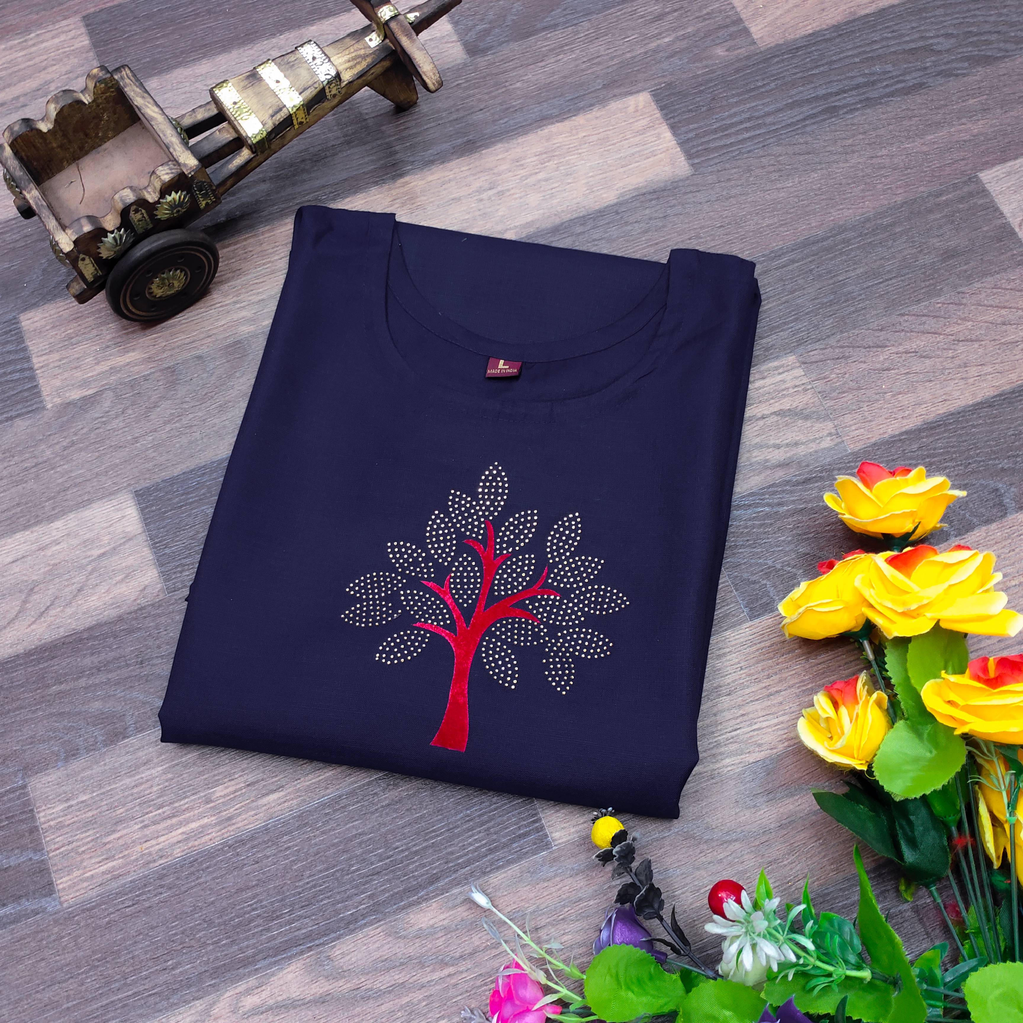 The 'Women 'Embellished 'Cotton 'Blend 'A-line 'Kurta 'is perfect to make a 'style 'statement'. The 'trendy 'kurta 'has a 'classic 'A-line 'silhouette along with intricate embellishments which add a touch of glamour. Crafted from a premium cotton-blend, the kurta is extremely soft, comfortable, and lightweight. It is ideal for special occasions and can be paired with churidar leggings and Kolhapuri flats.