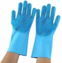 shivay Silicone Heat Resistant Rubber Dish Washing Gloves with Wash Scrubber Wet and Dry Disposable Glove Set (Free Size Pack of 2)