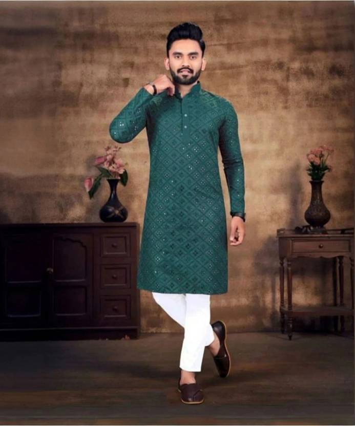 Look your ethnic best wearing this coloured kurta pyjama set. Made from Cotton regular-fit kurta pyjama set comprises a full-sleeved kurta and pyjama to complete your look.