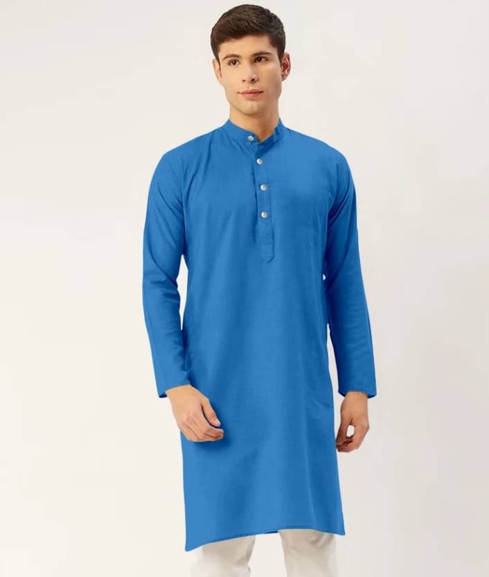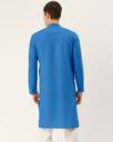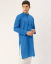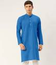 Men Solid Cotton Blend Straight Kurta (Blue, Green)