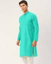 Men Solid Cotton Blend Straight Kurta (Light Blue)