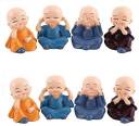 Shivoham Creations Set of 4 Monk Miniature Buddha Figurines Showpiece for Home, Office Decoration Decorative Showpiece - 5 cm (Polyresin, Multicolor)