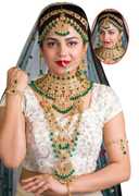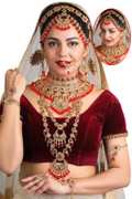 NECKLACE, LONG NECKLACE, 1 PAIR OF EARRINGS, 1PAIR OF HATH PANJA, DAMINI, BAJU BANDH, NOSE RING