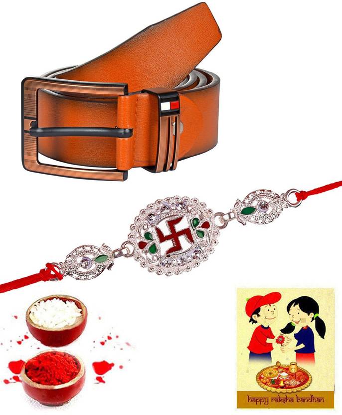 Shivshakti Exports Designer SPLRGS107 Plastic (PVC) Belt Set (1 Rakhi, 1 Belt, 1 Best Wishes Greeting Card, 1 roli and 1 chawal pack)